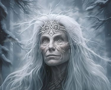 When the Cailleach awoke, she saw, to her horror, that green grass had broken the ice in the valleys, and summer birds were everywhere, singing in praise of Brighde. The Cailleach took her Holly wand and brought it crashing down on the landscape. Ice shot outwards from it in every direction, cloaking the land in winter again. Yet still the Caileach dreamed of Summer. When she next awoke, she felt her face and found it smooth, and strands of gold shone in her hair. The Cailleach howled in fury, but in her heart, Brighde laughed and sang. Winter marks the time when the Cailleach is strong, and summer is when the Cailleach has weakened, and Brighde reigns over the land. And so it is during the time when winter gives way to summer and summer to winter, there are storms across the land in the struggle for power between the Caileach and Brighde. It is said that on the first day of spring, the Cailleach comes out from her slumber in her cave to gather more firewood. If the day is sunny and clear, she will gather up more firewood, and there will be six more weeks of winter, but if the day is cloudy and cold, she will go back into her cave, and summer will come early.