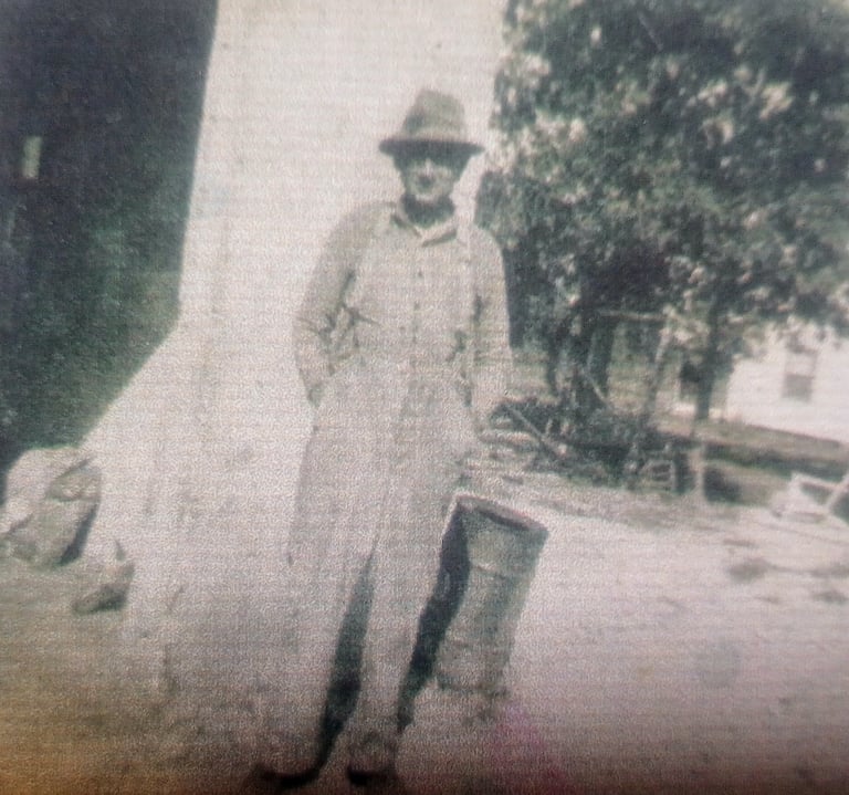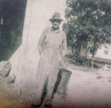 Joseph Thomas Alexander, born in 1875 to Nelson Alexander and Martha Elizabeth Twiddy, worked the fields of Martha's father until near the turn of the century. It was about this time that large logging companies moved into what is now mainland Dare County and began logging off the cypress and white cedar in the swamps of that county. Joseph, who went by his middle name of Tom, got work in the lumber industry that had sprouted up in Buffalo City, Dare County, North Carolina. During this time, he met and married Mary Ellen Kennedy, and in 1910, they had Charlie Sedan Alexander. The Great Depression shut down the logging industry in Buffalo City, and the town of around 3000 people was deserted. Today, the swamp has completely reclaimed the land where that logging town once stood. Joseph Thomas Alexander and his wife and children moved west along the south shore to Skinnersville, near Roper, North Carolina.