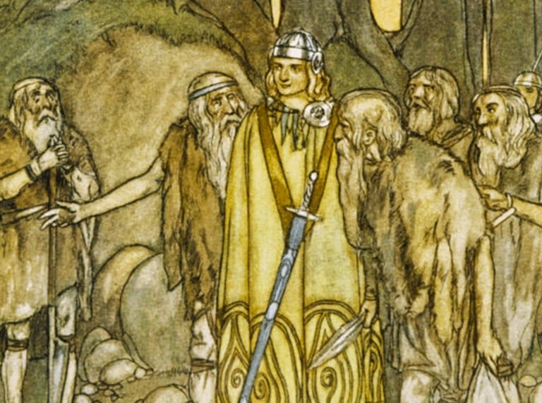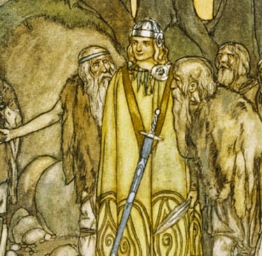 After two and a half moons, they had made great progress. Then one morning, having eaten, they didn't happily continue on the journey. Instead, they seemed to sink into some kind of deep trance. Conán grew impatient, then he grew angry, pulled out his sword, and threatened the people. It made no impression on these people, who had fallen deep into a trance. Eventually, Conán sat down beside an elder from the group named Ógma. He candidly said, "Ógma, look what's going on! We were making such great progress, now look what's happening." It took a long time for Ógma to come into a sense of his own hands, his own feet, his own identity. Finally, he emerged into a sense of who he was, and he turned to Conán and said, "We have moved so far so fast during these last two and a half moons that we must now sit down and wait for our souls to catch up."
